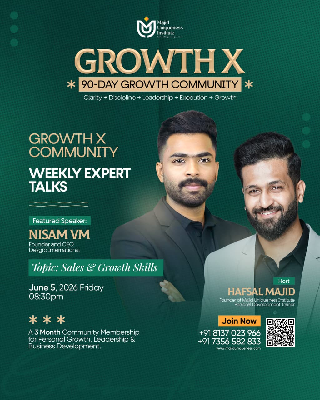 - Week 11 – Sales & Growth Skills – June 5 – Nisam VM (Founder of Desgro International)