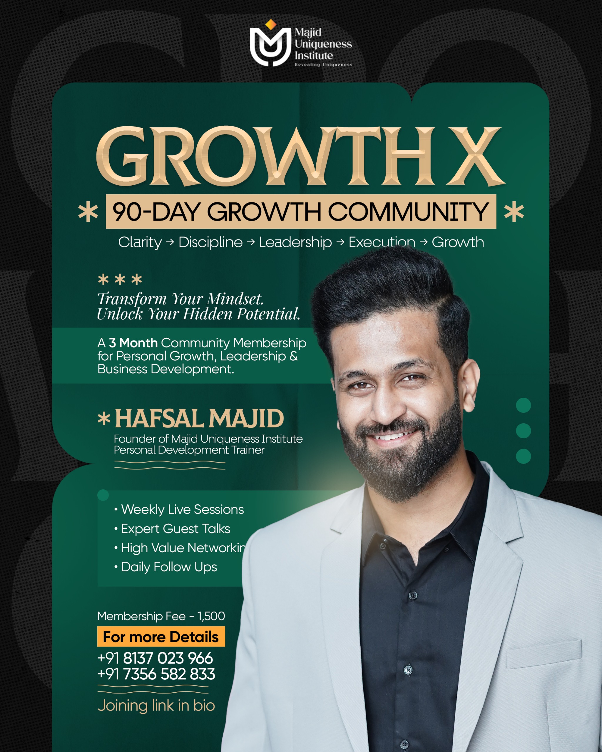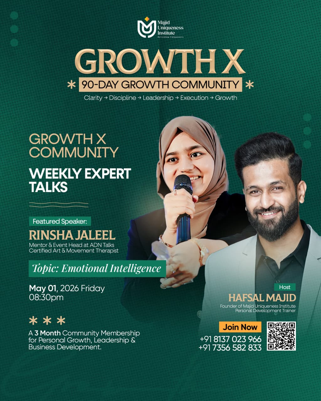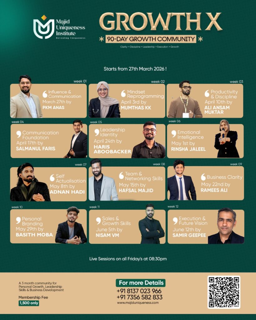 - Week 8 – Team & Networking Skills – May 15 – Hafsal Majid (Founder of Majid Uniqueness Institute).