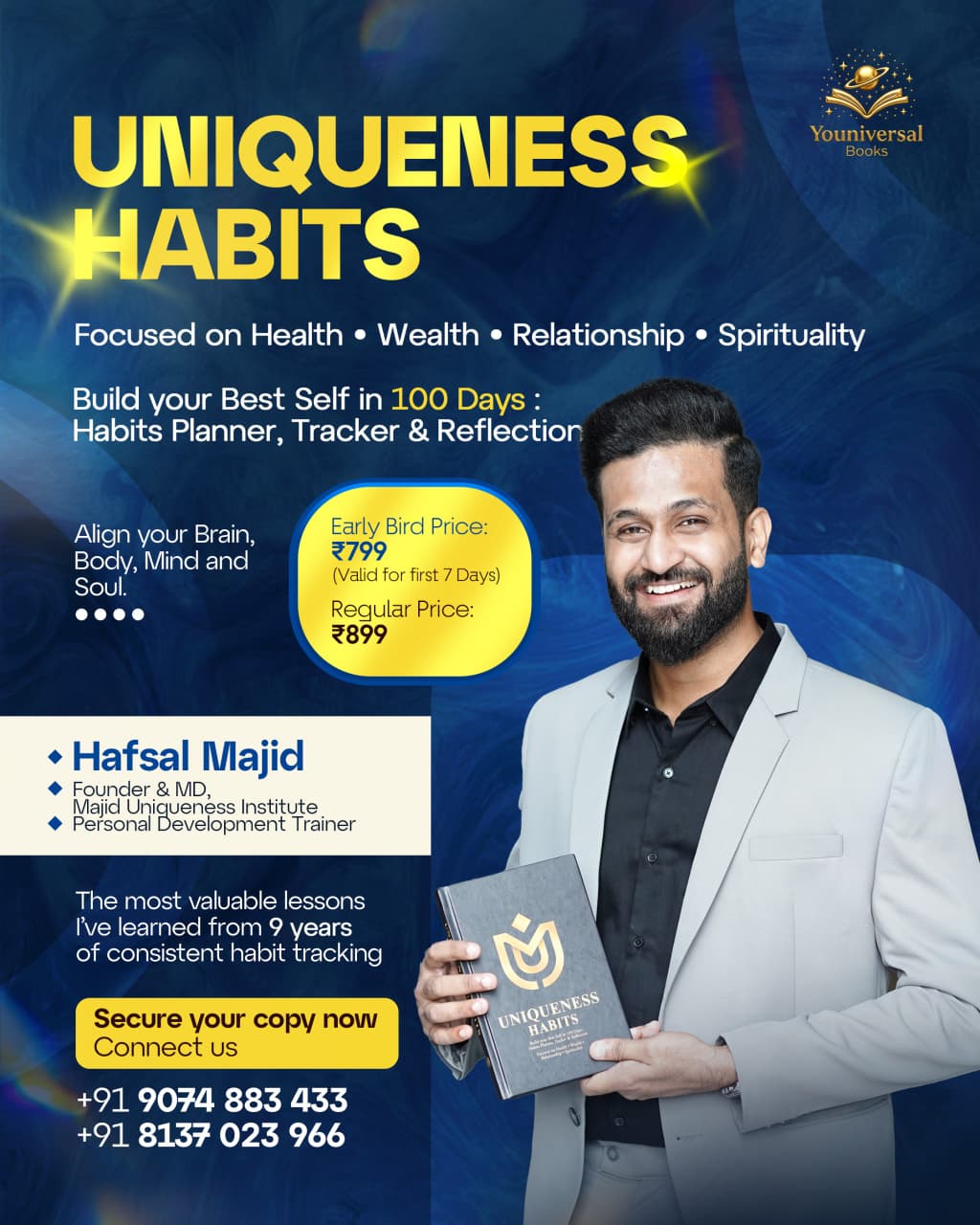 Created by Hafsal Majid, with 9 years of disciplined habit tracking, this planner helps you discover your strengths, prioritize what truly matters, and design a life that supports you financially, emotionally, and personally.